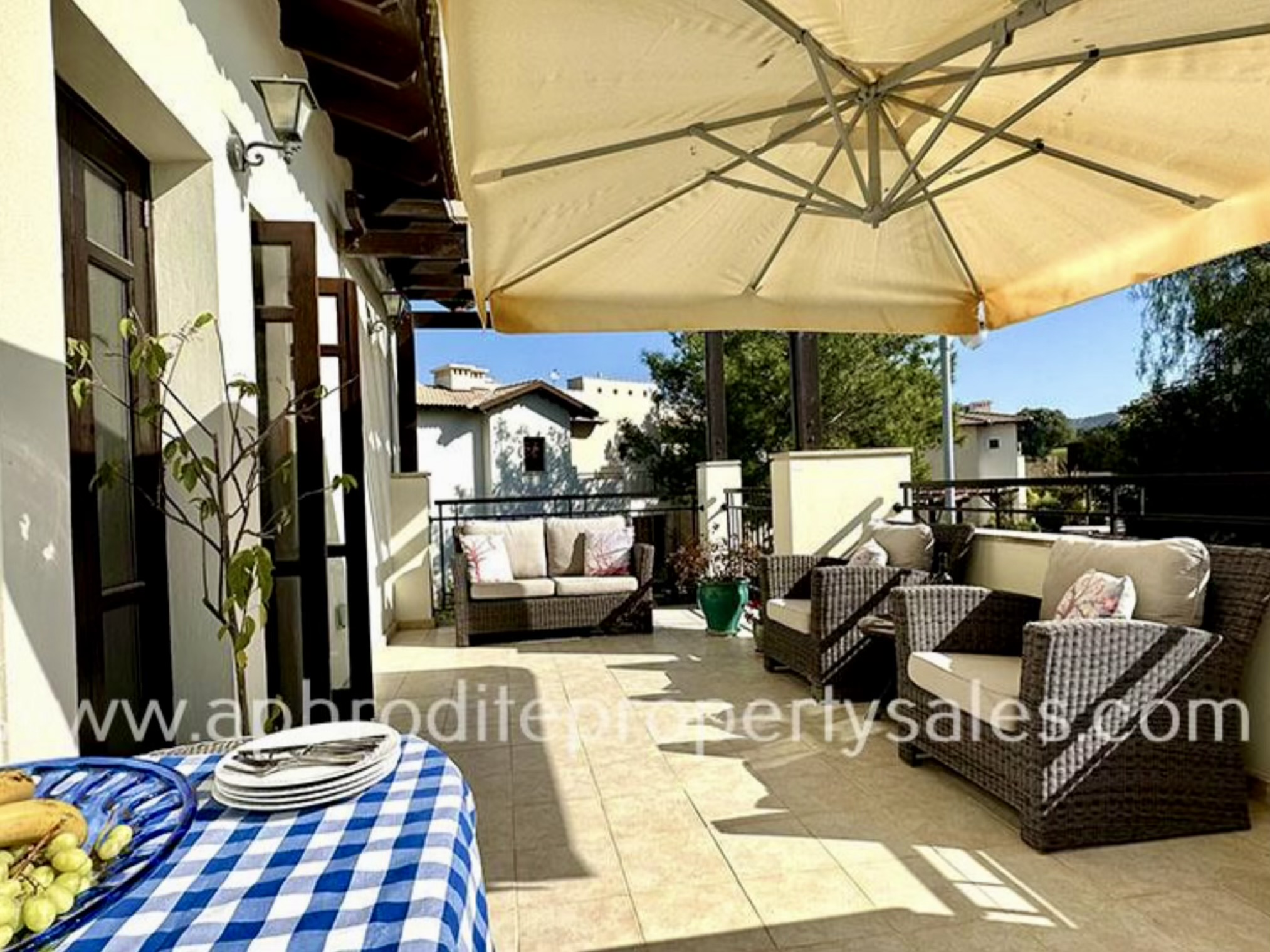 The apartment is extremely well presented and its design, with three terraces, provides light and airiness throughout the day. It has air-conditioning and ceiling fans throughout.