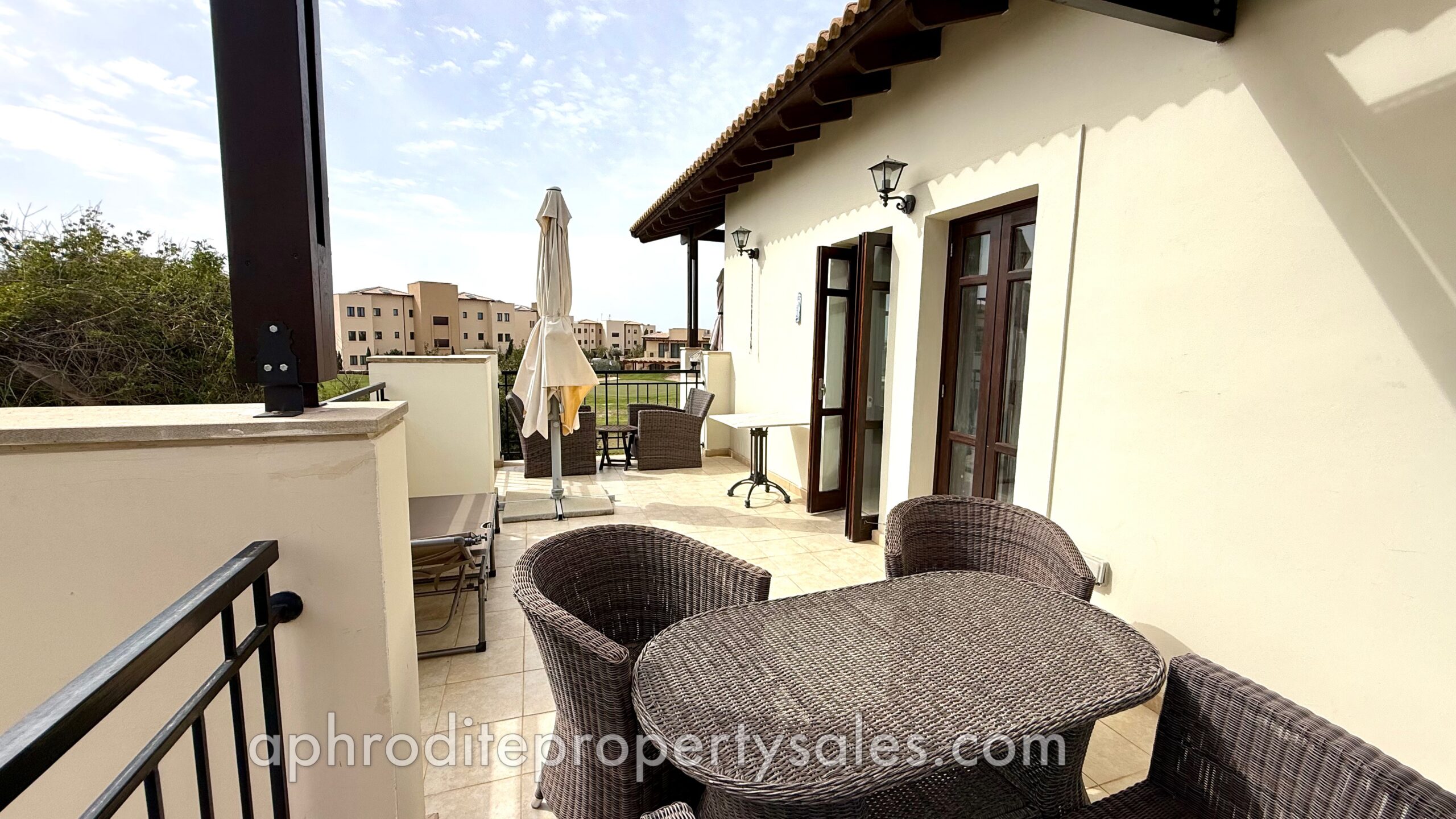 Situated in the beautiful and sought after Helios Heights village, this delightful one bedroom, first floor apartment is in a superb location in the heart of the resort, overlooking the golf academy. Only a ‘stones throw’ from the tennis academy it is literally a 3 minute walk to the centre of the resort facilities.