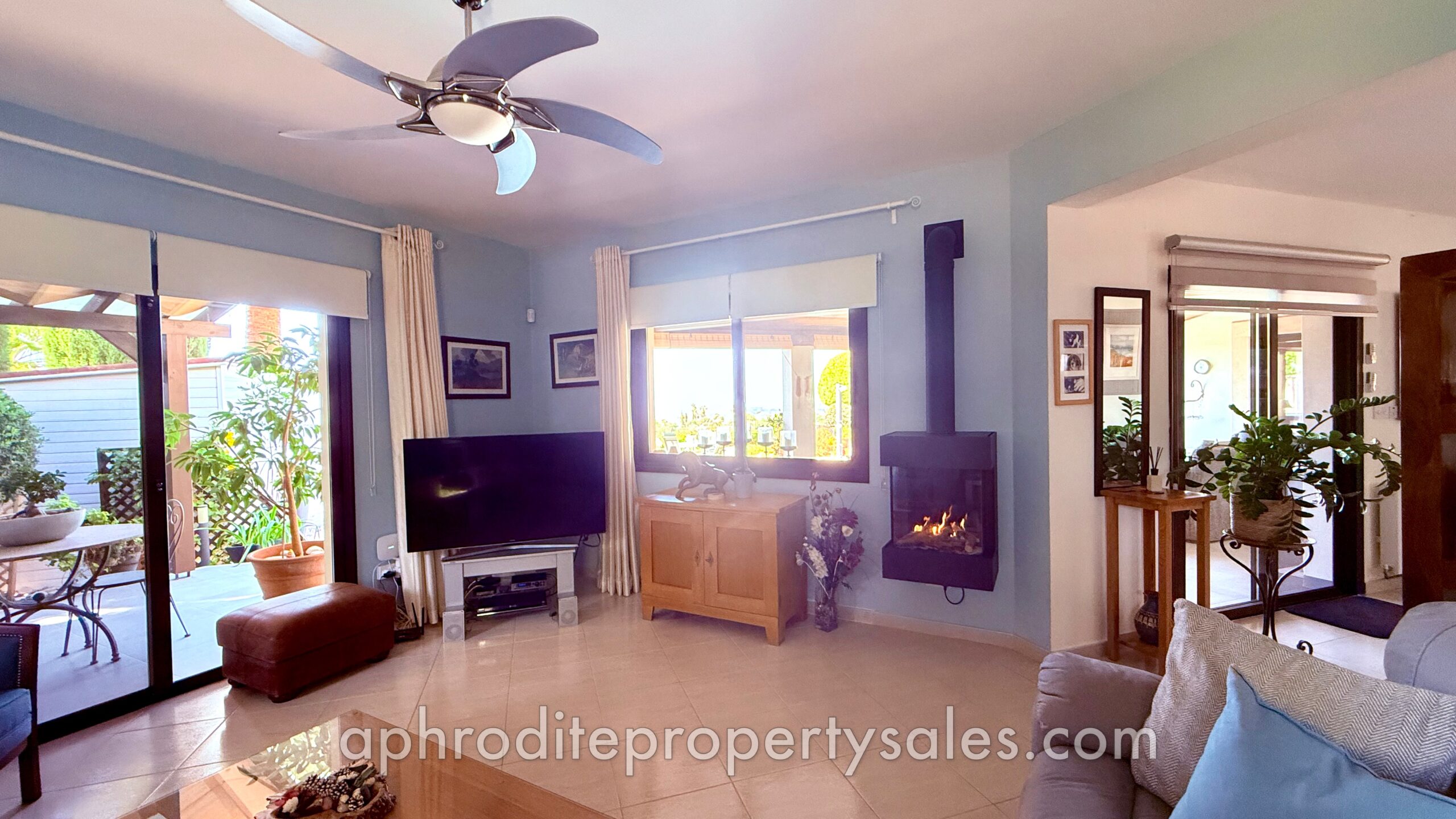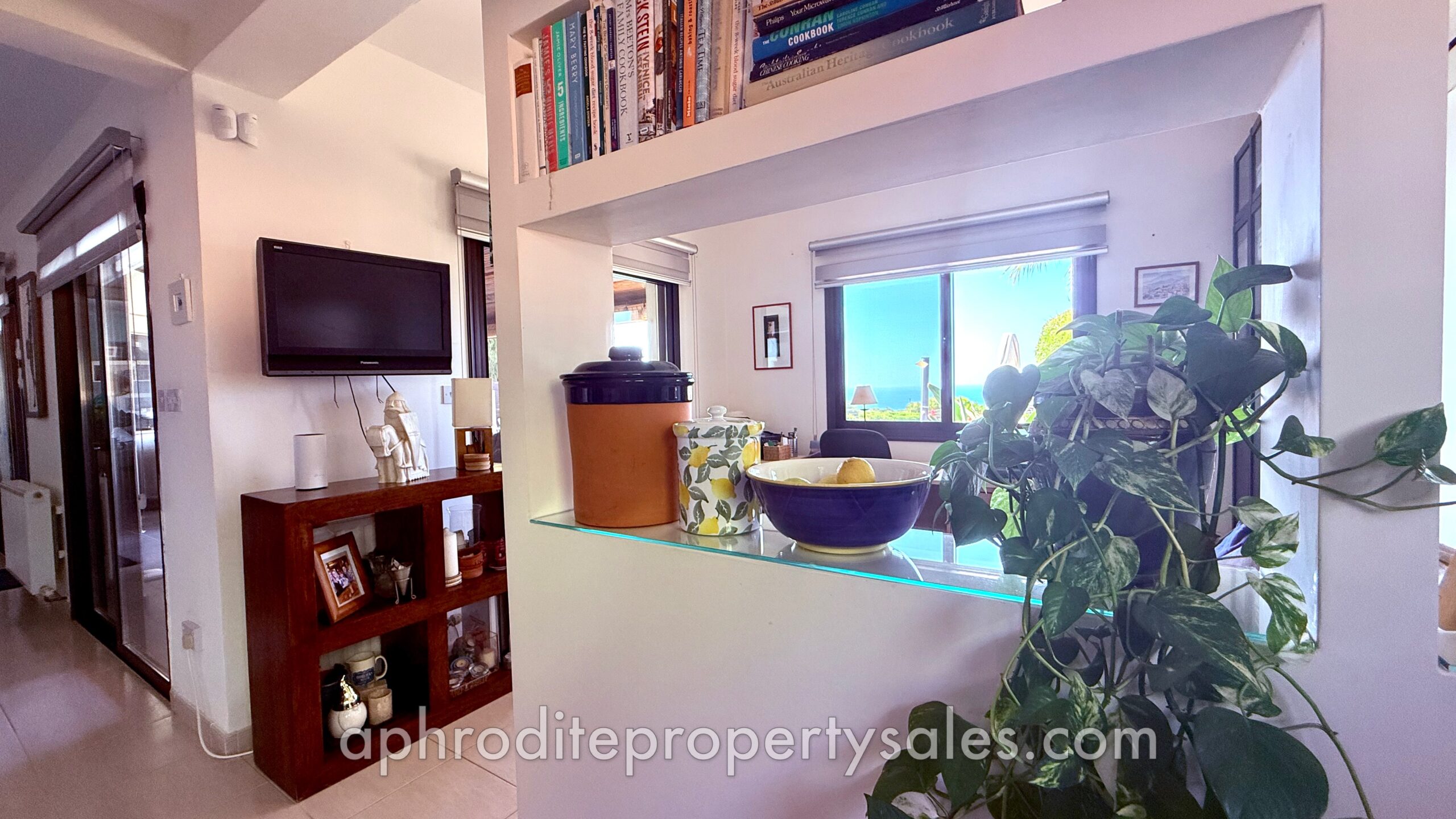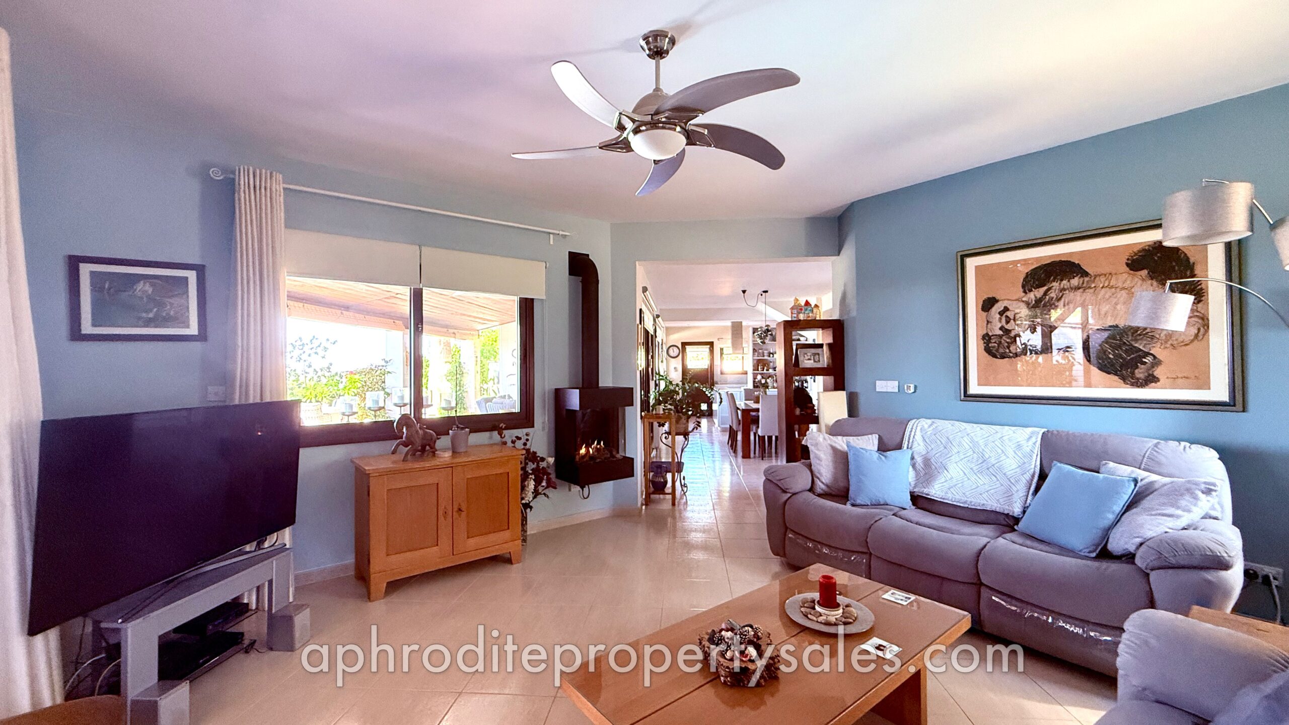 A large 3 bedroom family sized villa has become available for sale with uninterrupted sea views across a large green zone. It has been tastefully renovated by the current owners with gas central heating, a gas wood burning stove, replacement windows, a new kitchen, refitted bathrooms and photovoltaic panels to ensure almost free electricity.