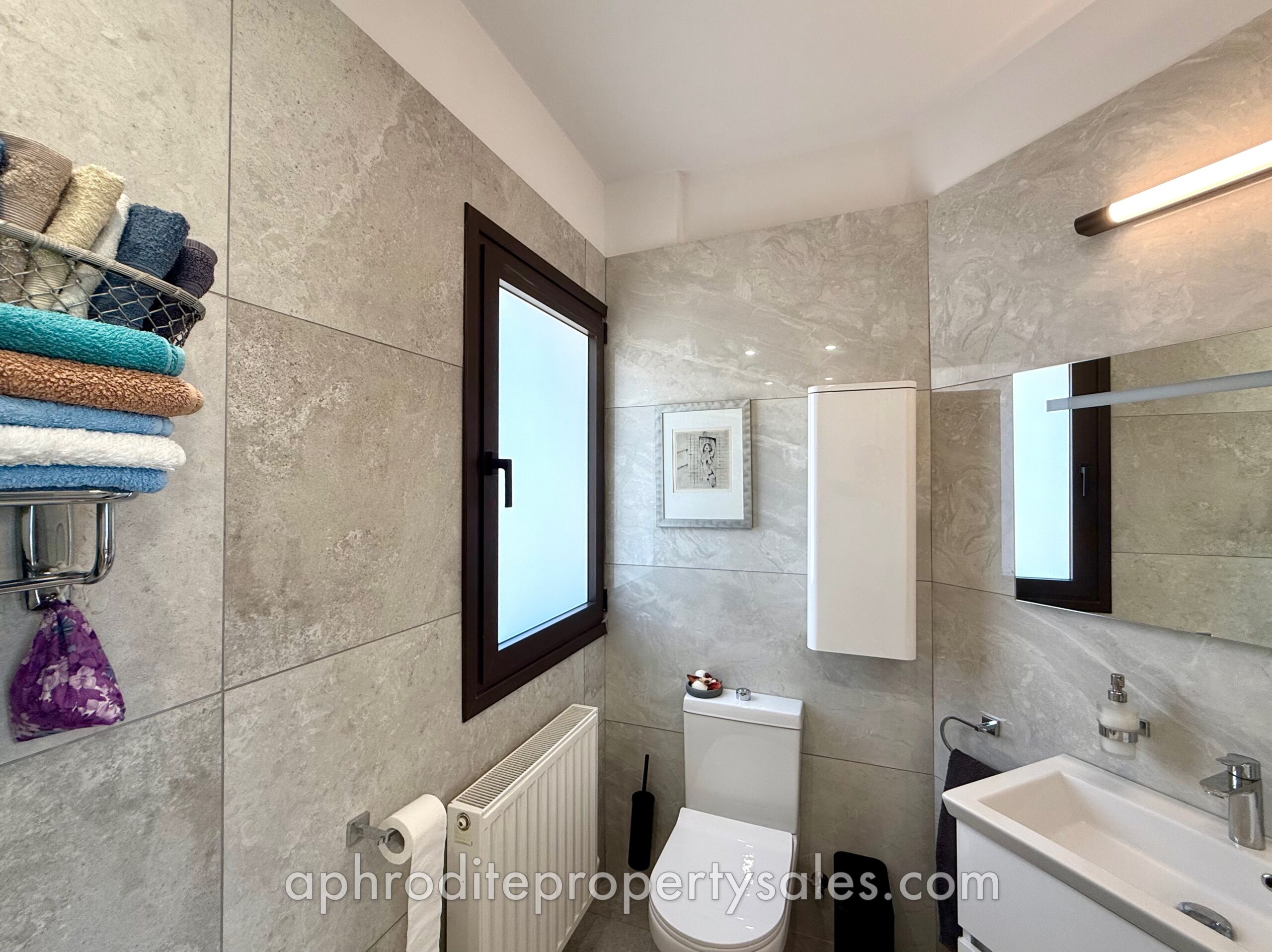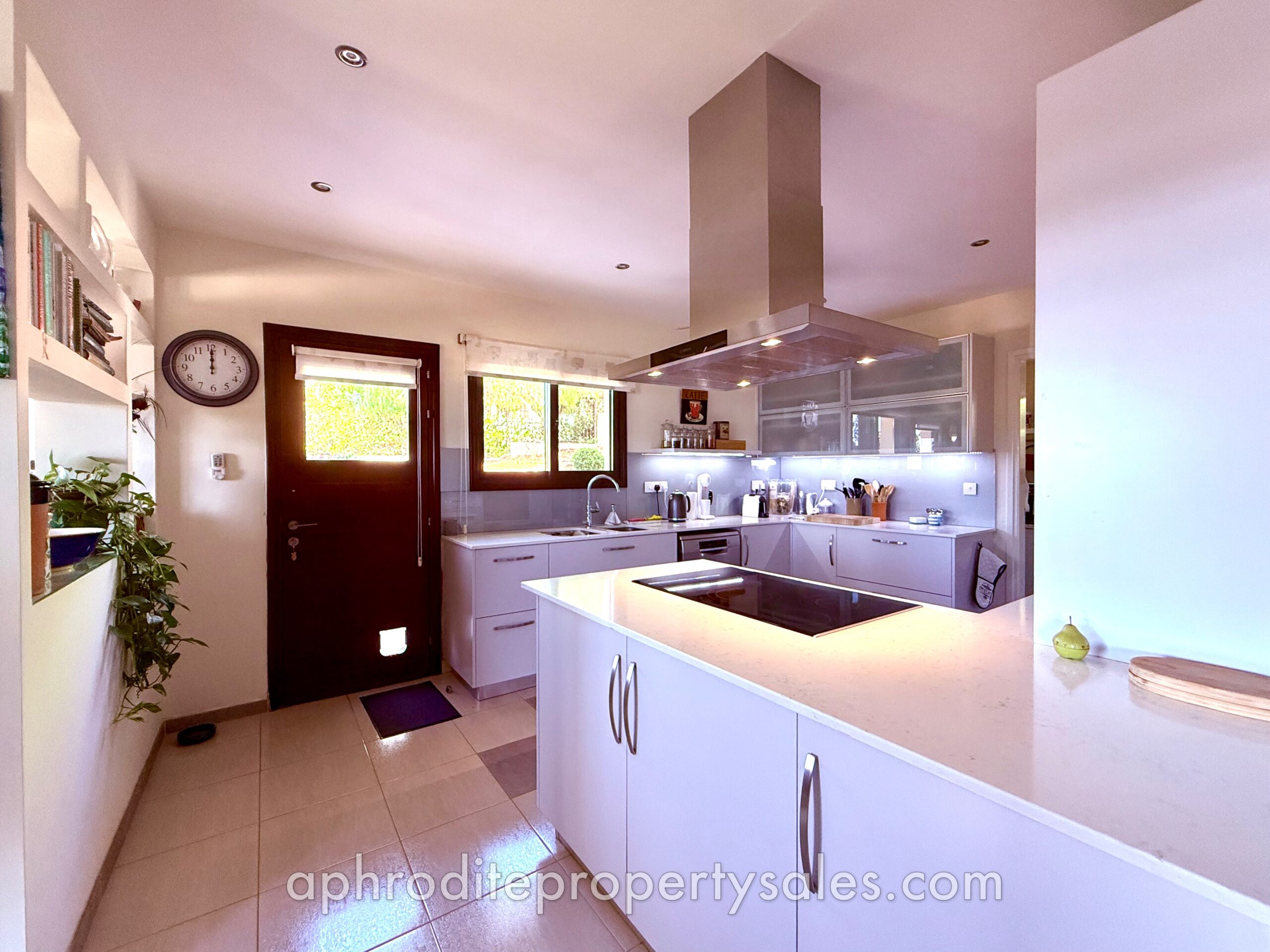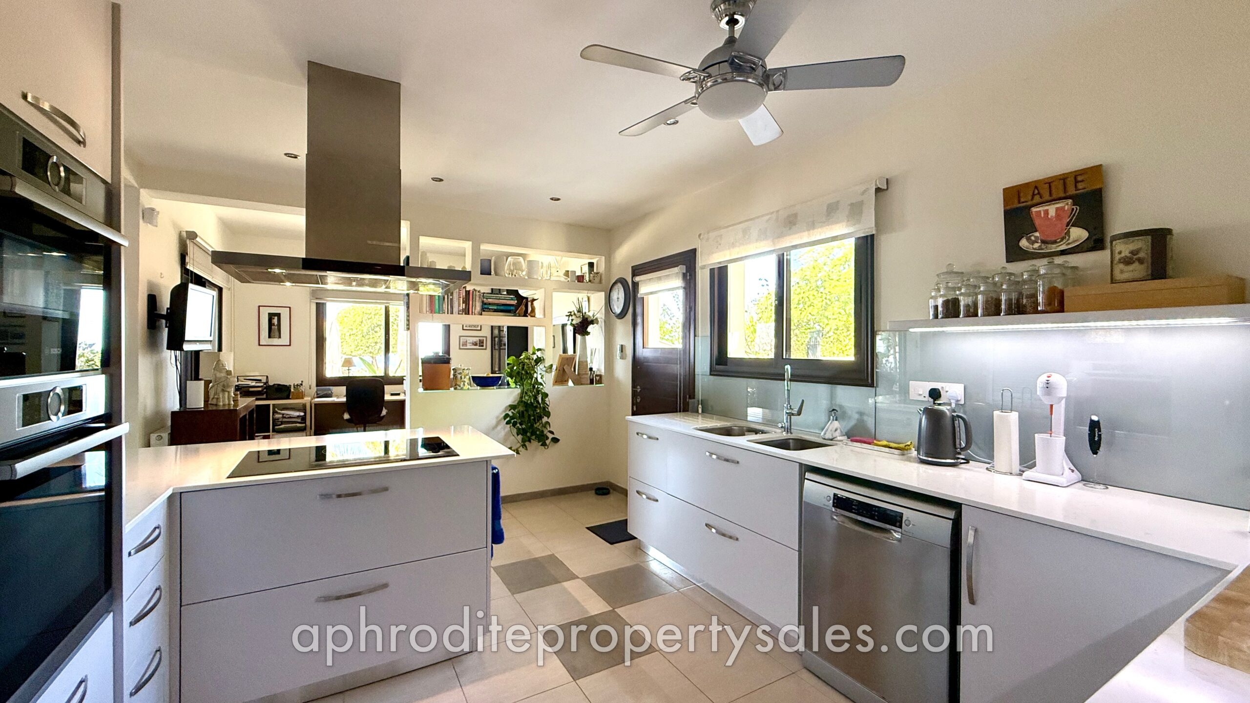 A large 3 bedroom family sized villa has become available for sale with uninterrupted sea views across a large green zone. It has been tastefully renovated by the current owners with gas central heating, a gas wood burning stove, replacement windows, a new kitchen, refitted bathrooms and photovoltaic panels to ensure almost free electricity.