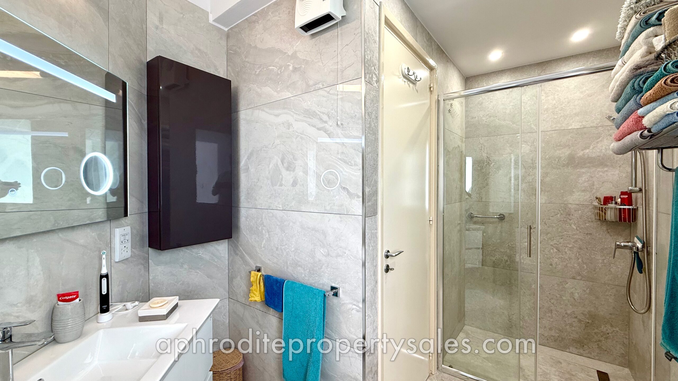 The master bedroom has a double aspect with sliding doors giving access to an enormous private terrace with glorious sea views. The ensuite shower room has been refitted with a high quality glass screen walk in shower and illuminated vanity unit.