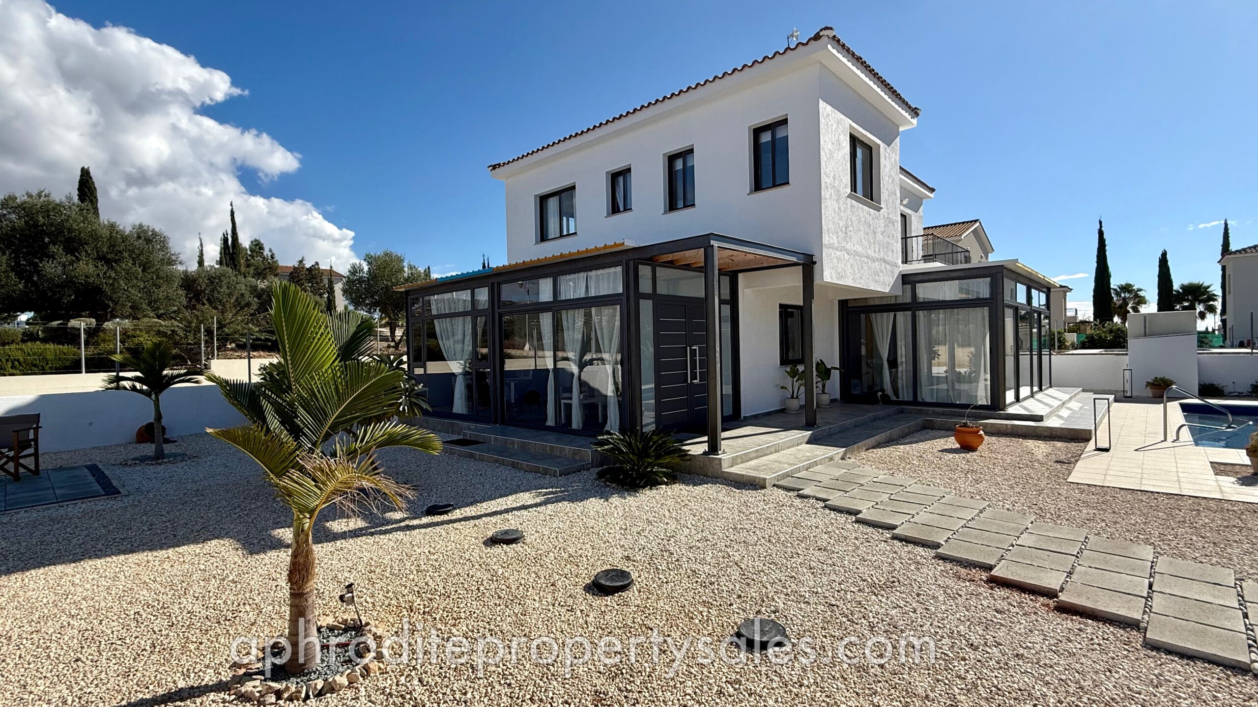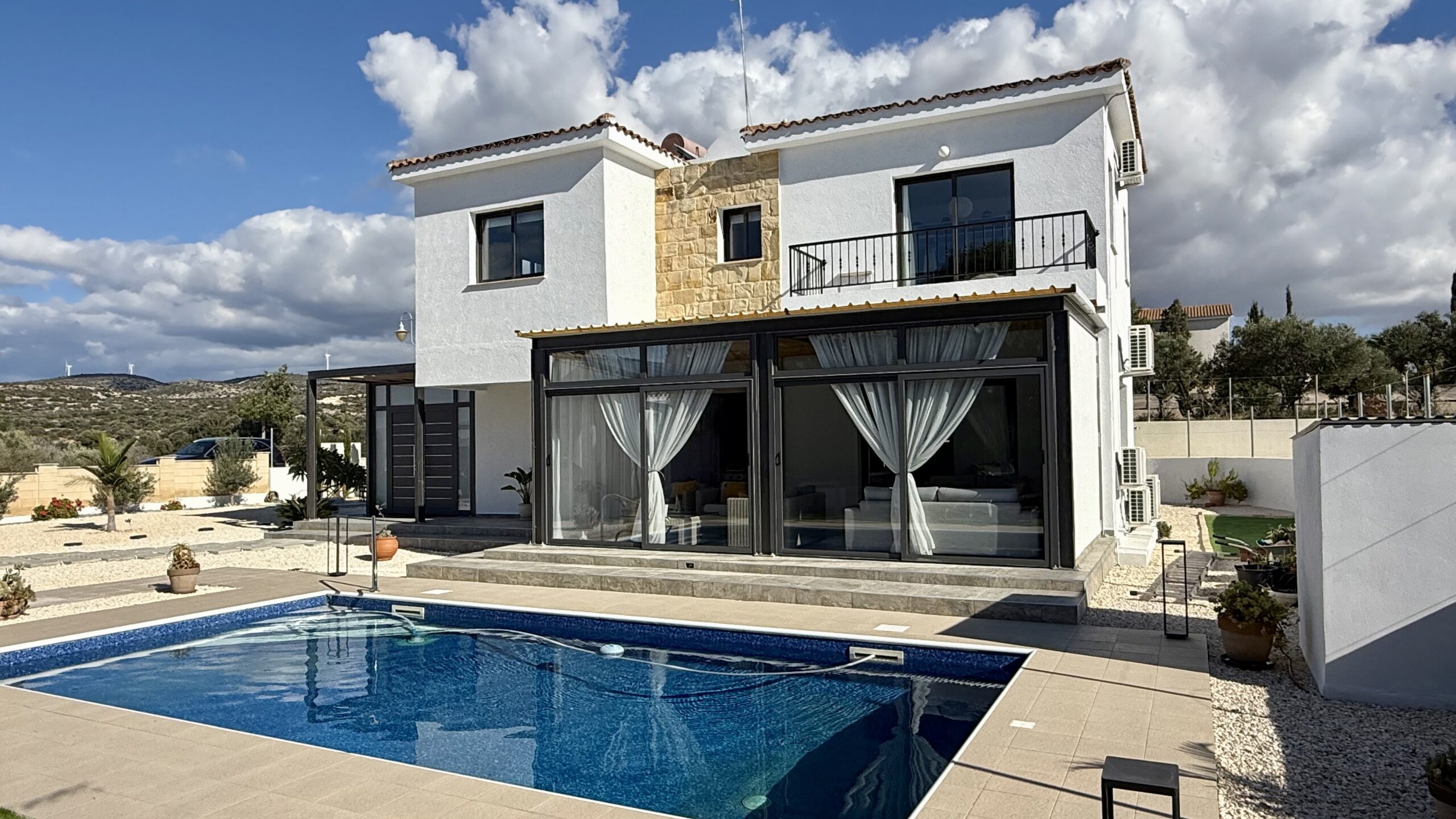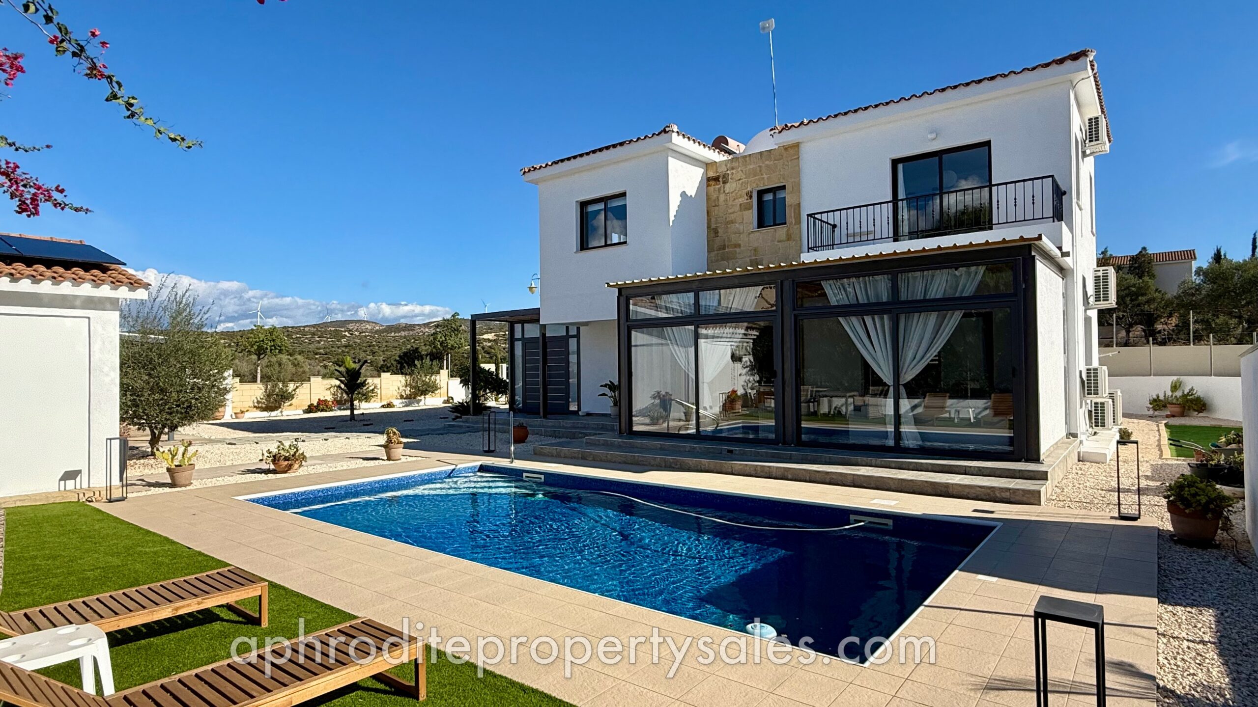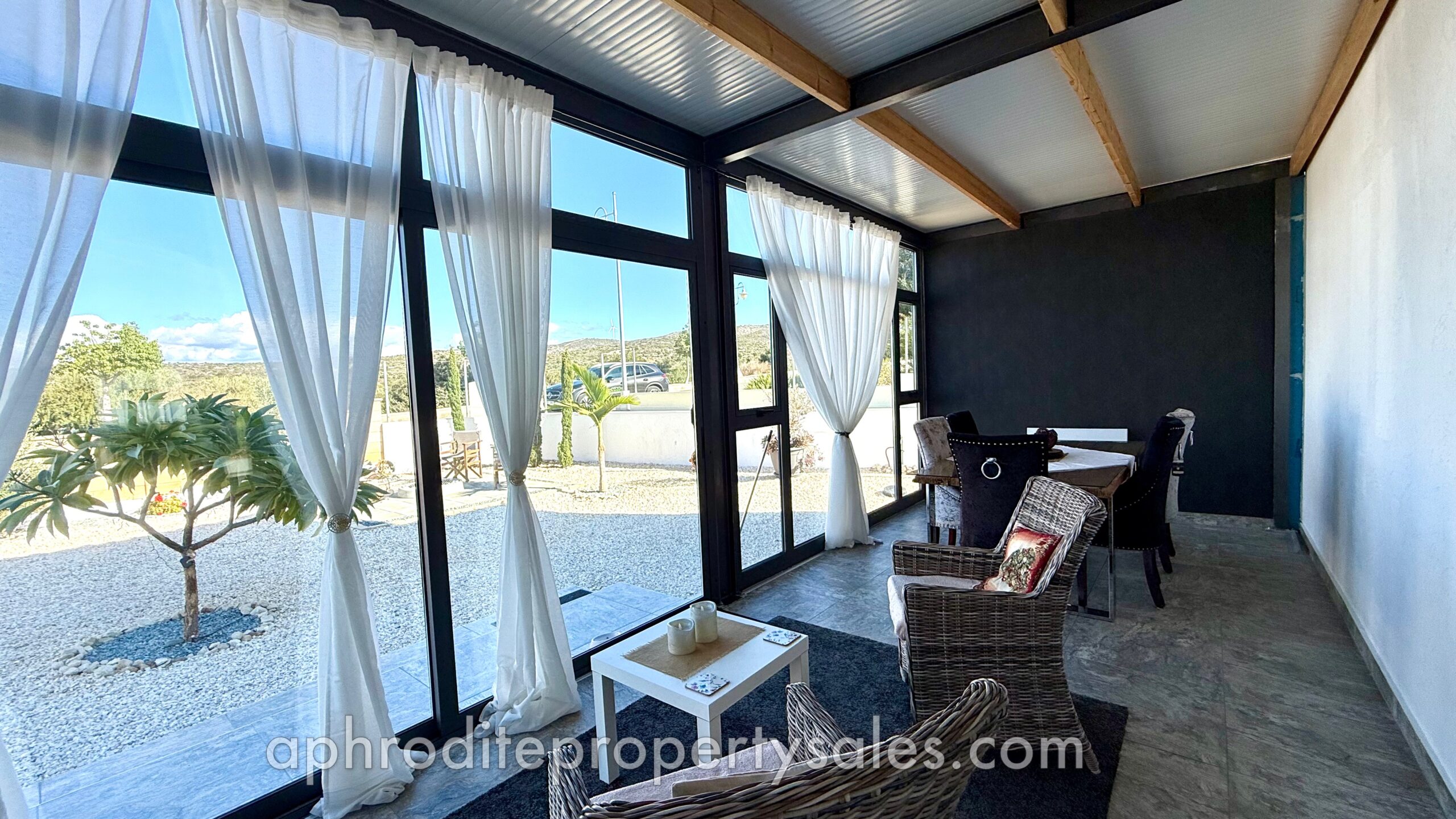 An attractive and spacious 3 Bedroom villa has become available for sale at the top end of Secret Valley with open views over the hills to the West and out to Kouklia village. It has been tastefully renovated throughout with large enclosed covered terraces providing additional living and dining areas of some 70 sqm.
