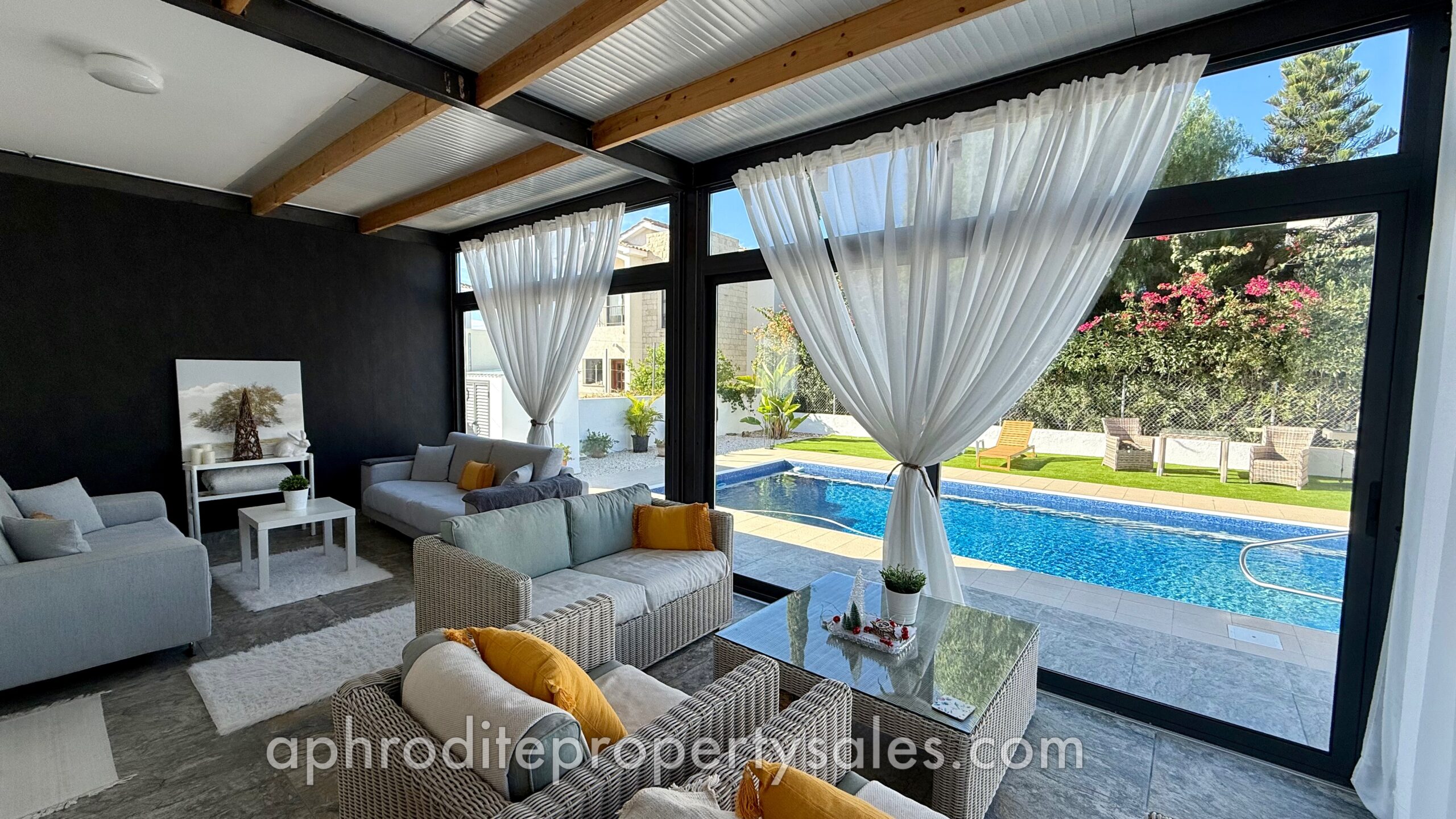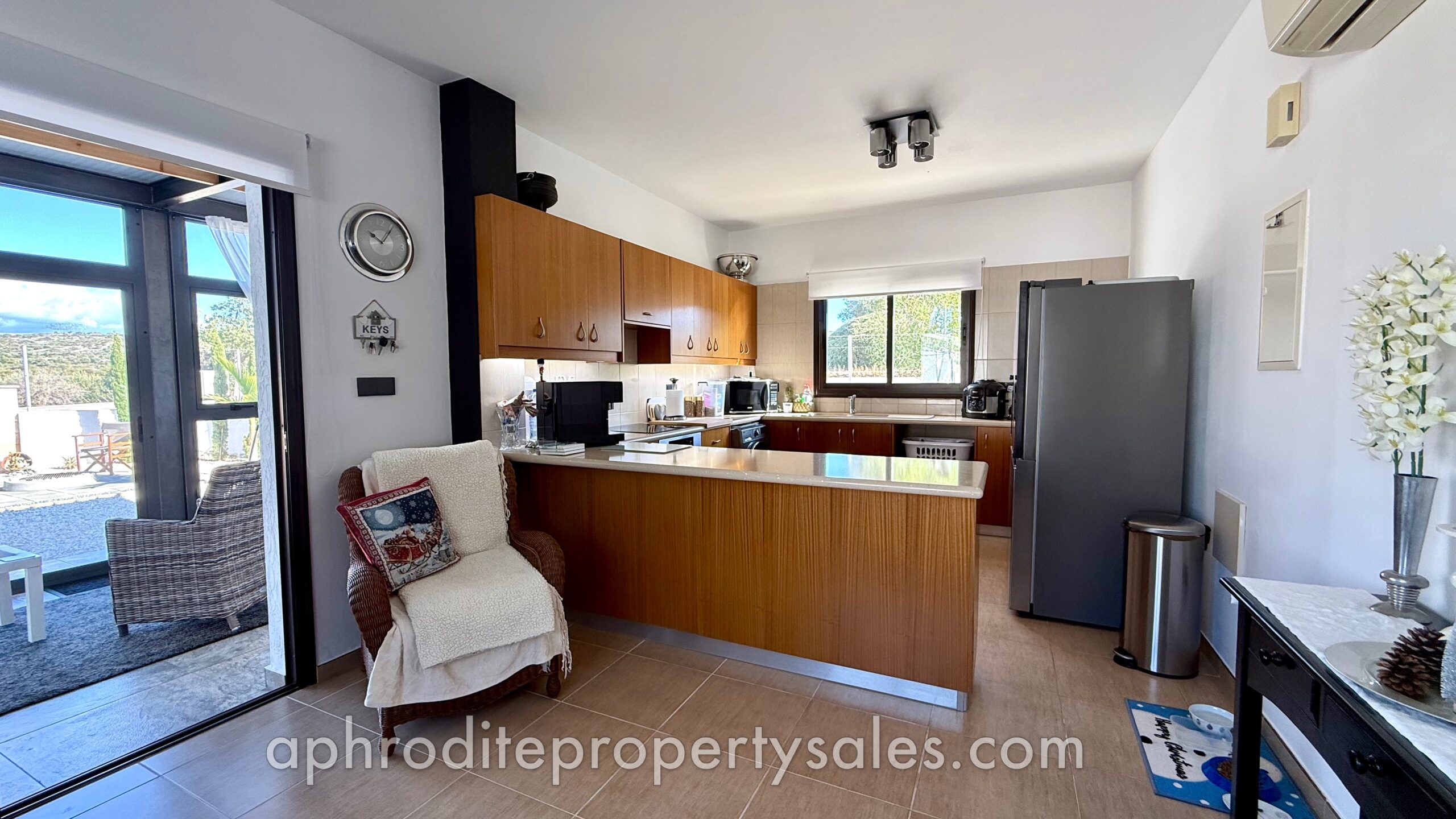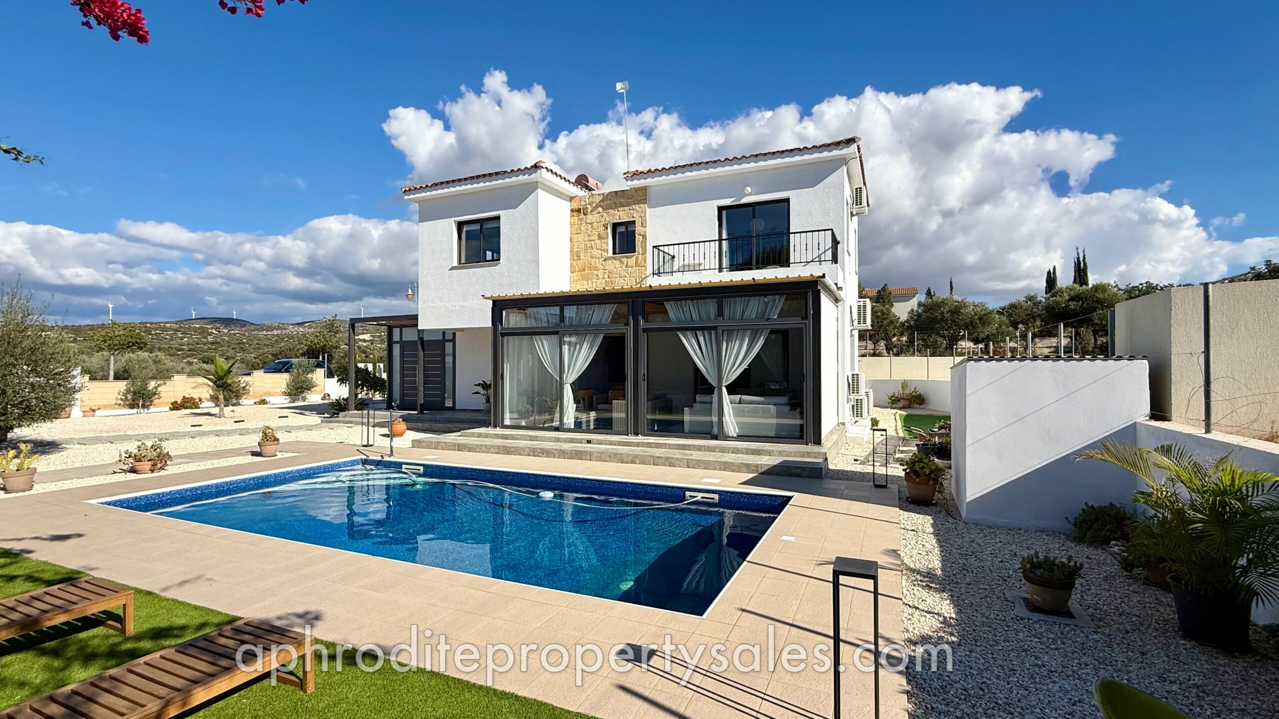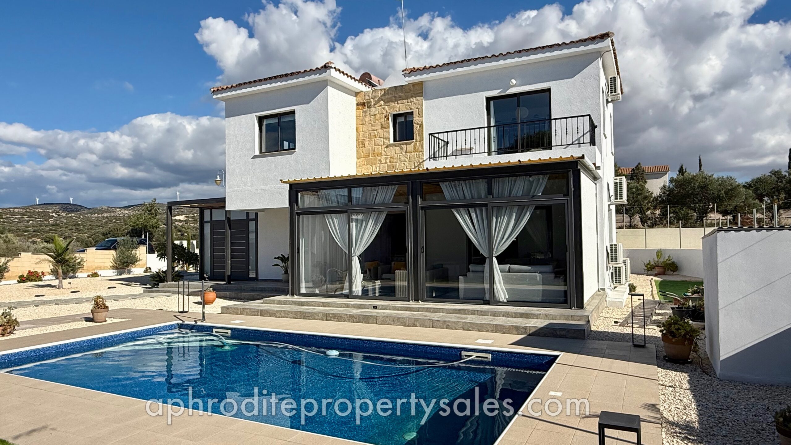 An attractive and spacious 3 Bedroom villa has become available for sale at the top end of Secret Valley with open views over the hills to the West and out to Kouklia village. It has been tastefully renovated throughout with large enclosed covered terraces providing additional living and dining areas of some 70 sqm.