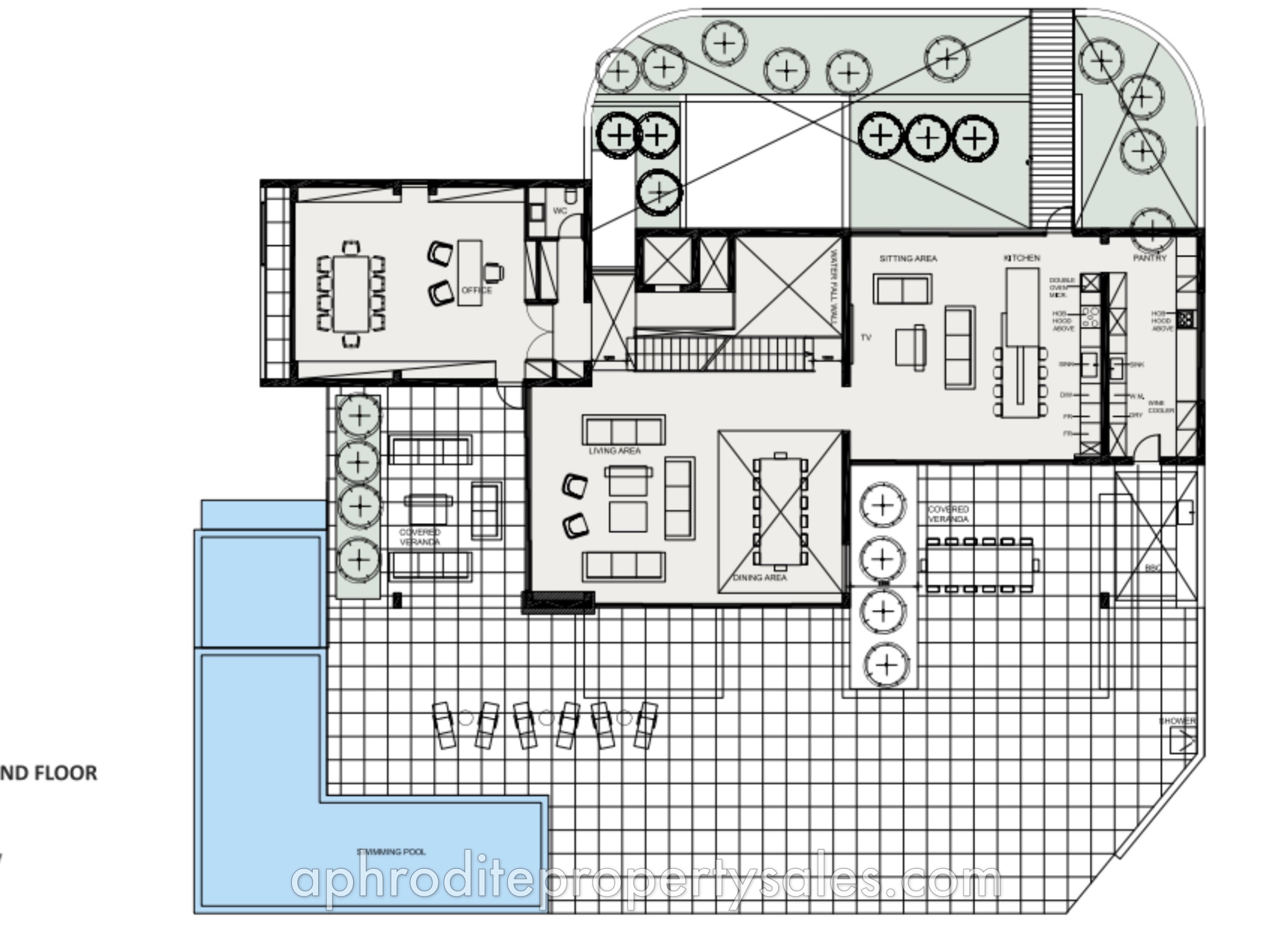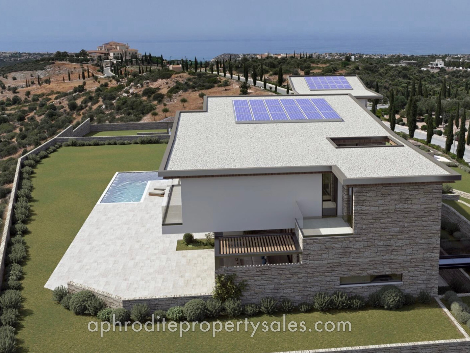 An exceptional 5-bedroom grand villa designed in a large plot of 2,926 m2, located in the famous Venus Rock Golf Resort. The villa is designed on three levels (basement, ground floor and first floor). The villa enjoys its own private swimming pool surrounded by an outdoor barbecue area, spacious indoor and outdoor areas. Attention to detail has been given and excellent quality finishes and specifications have been selected. This villa enjoys amazing views of the Mediterranean, the Secret Valley Golf Course, Aphrodite Hills and the beautiful surrounding landscapes.
