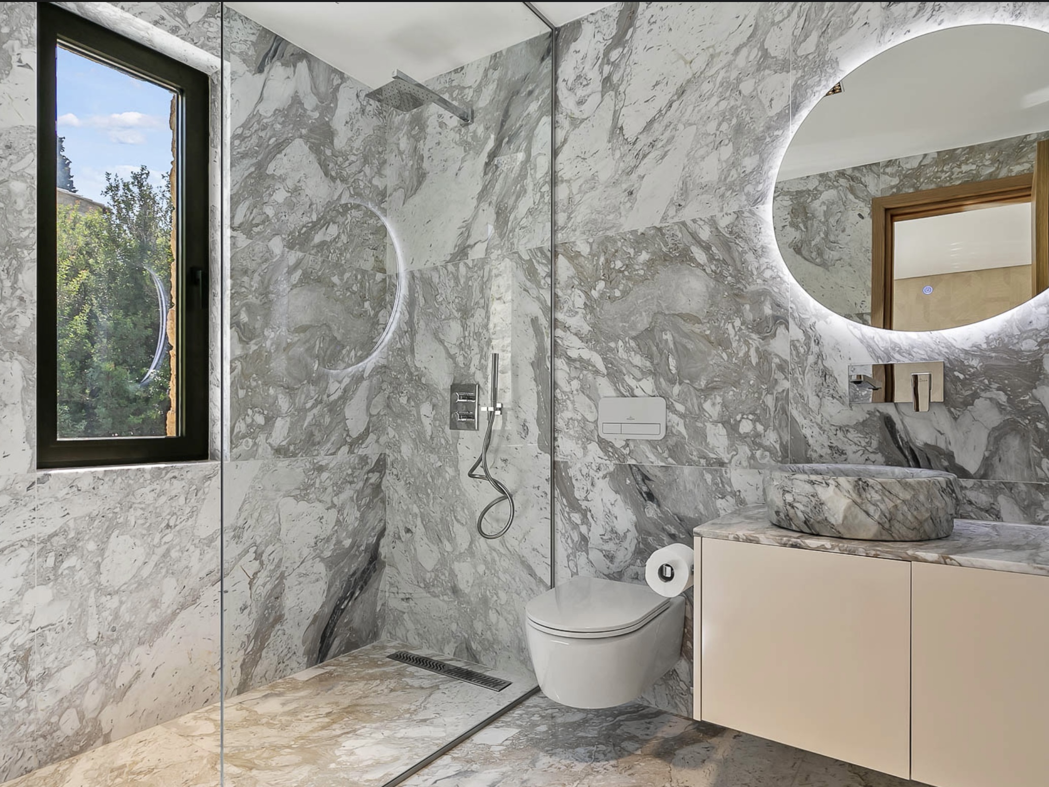 There are five bedrooms, all with ensuite. Once again all are finished to the highest of standards and four of the bedrooms also enjoy a private balcony. The master bedroom has a spectacular walk-in wardrobe and separate dressing area. A stunning ensuite and full length windows which allow for natural light and a spacious feel.