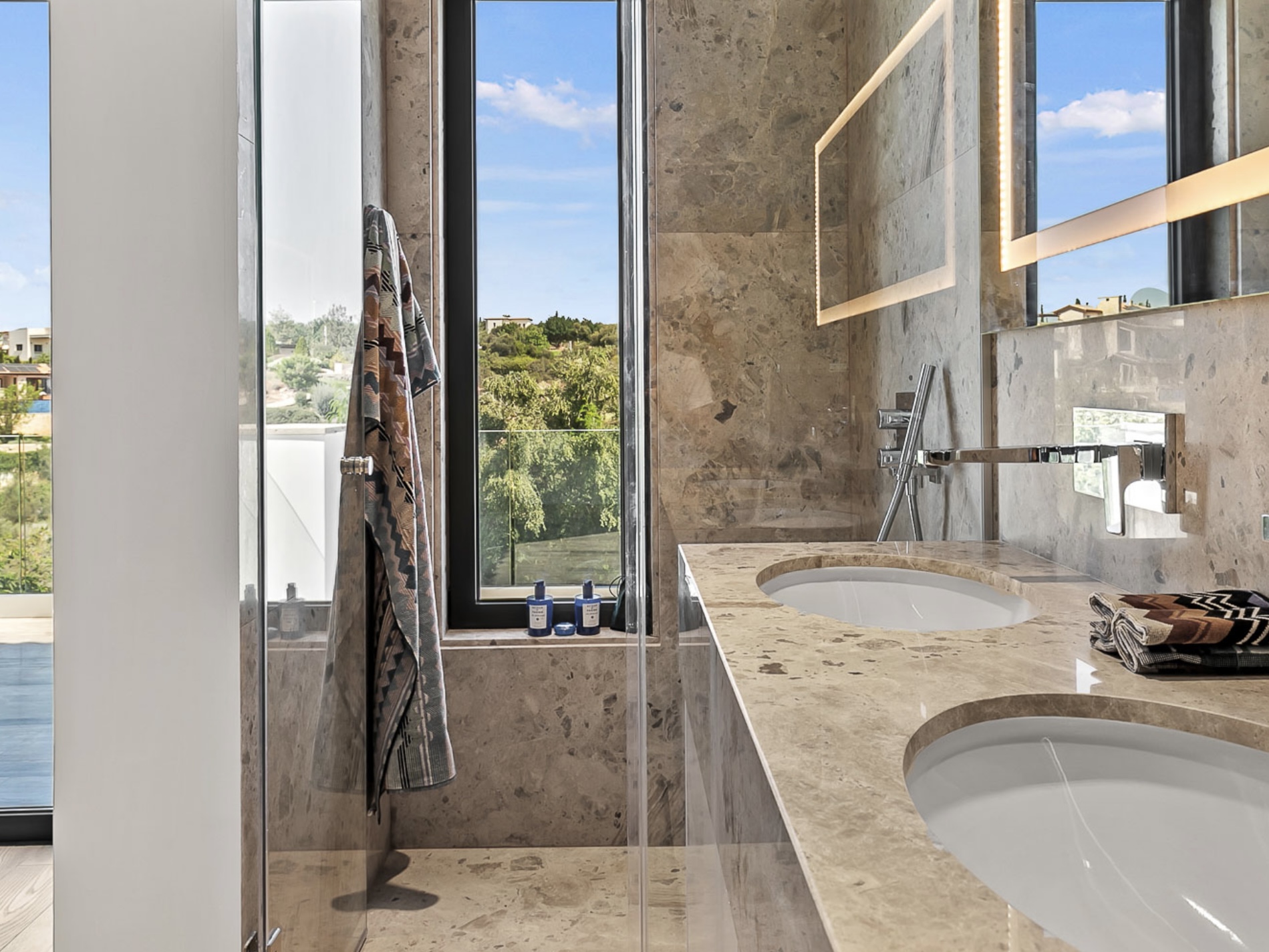 This elegant villa on the Eastern plateau epitomizes opulence, comfort and exclusivity on a grand scale. With artistic architectural details, luxurious materials and smart home technology throughout.